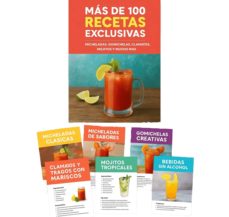 Micheladas y Coctelería” es un pack de 10 recetarios digitales en PDF con recetas paso a paso para preparar bebidas deliciosas, coloridas y con presentaciones profesionales.